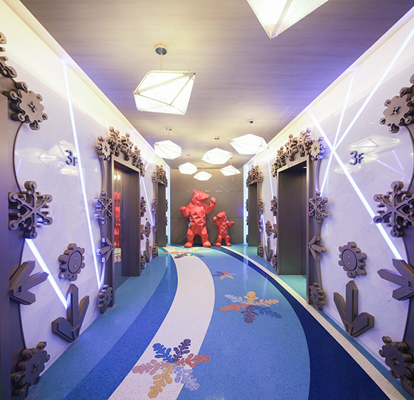 As the highlight of the hotel, the lobby is mainly blue with colorful snowflake patterns on the ground Give the resident extraordinary vision