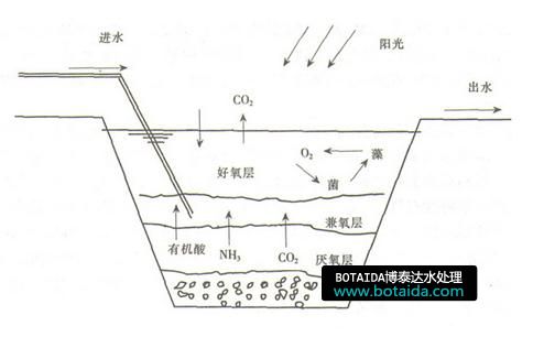 在傳統(tǒng)基礎上改進的高效藻類穩(wěn)定塘比傳統(tǒng)的穩(wěn)定塘有更多的生物,并增加攪拌裝置,促進污水混合;調(diào)節(jié)塘內(nèi)的氧氣和二氧化碳的濃度,及水溫和水質(zhì),從而提高有機物、氮和磷的去除率。高效藻類穩(wěn)定塘受光照、溫度、水深和塘內(nèi)流速的影響大。